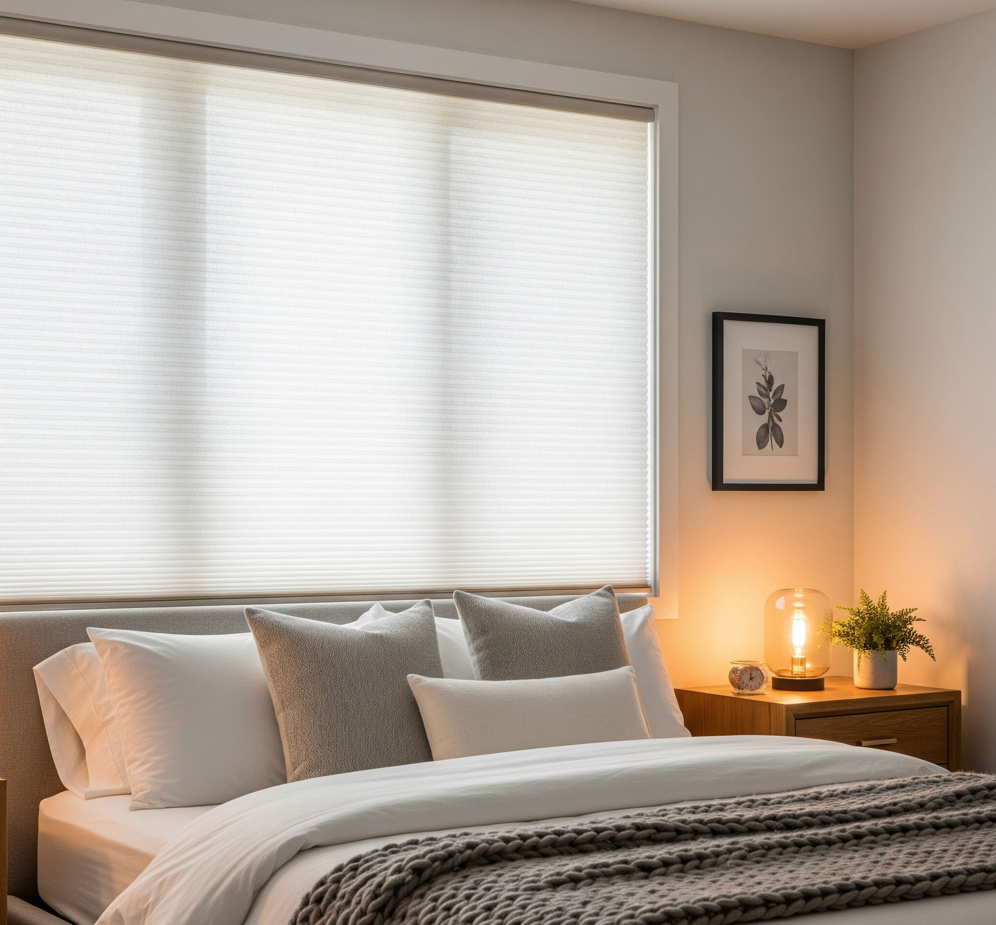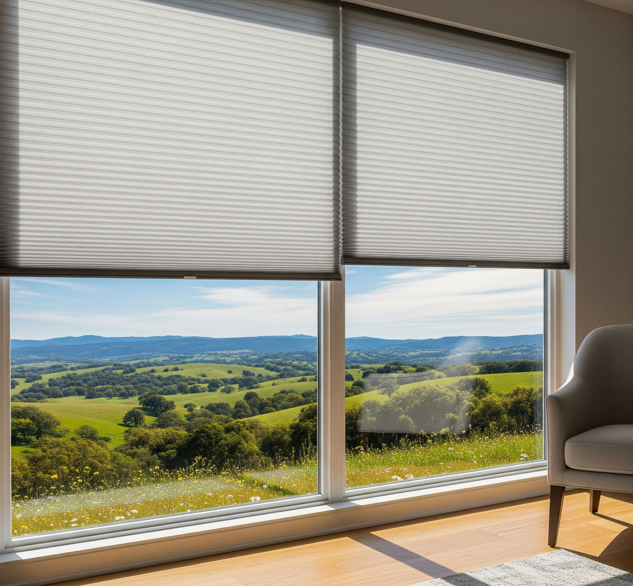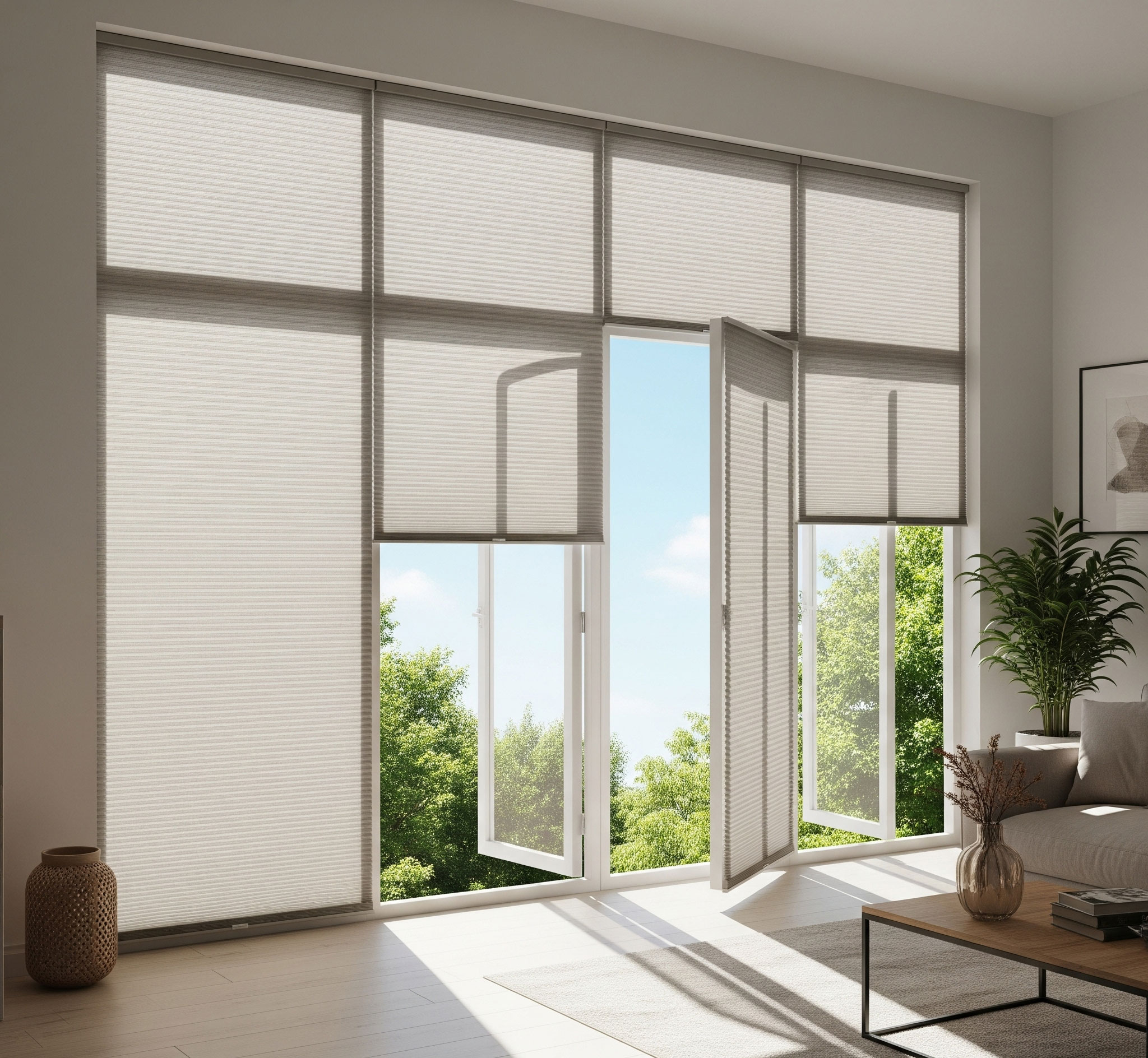 Honeycomb Shades, also known as cellular shades, are a perfect blend of modern style and practical function. Their unique honeycomb structure creates air pockets that act as insulation, helping to keep your home cooler in the summer and warmer in the winter while also reducing outside noise. Available in a wide selection of fabrics, colors, and pleat sizes, Honeycomb Shades provide flexible light control options, from sheer to blackout, to suit any space. Designed with both beauty and performance in mind, they can be customized with cordless and motorized systems for a safer, more convenient experience. Durable, stylish, and energy efficient, Honeycomb Shades are an excellent choice for any room in your home