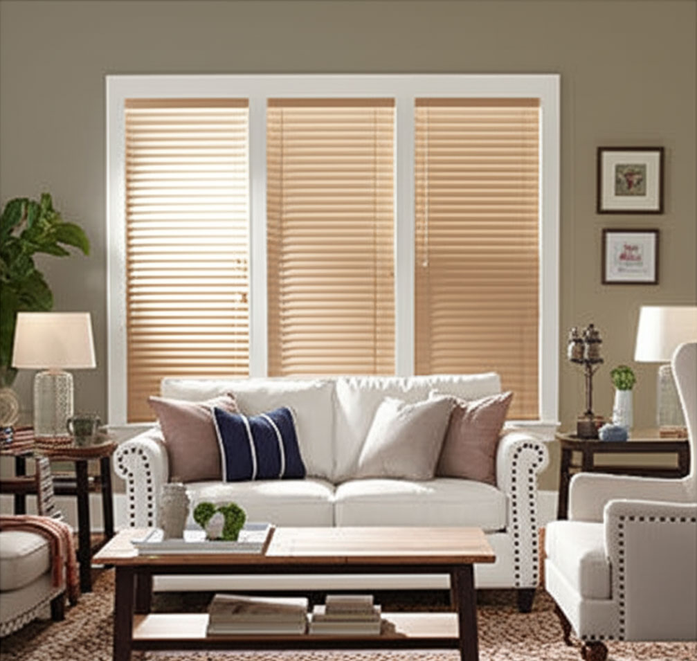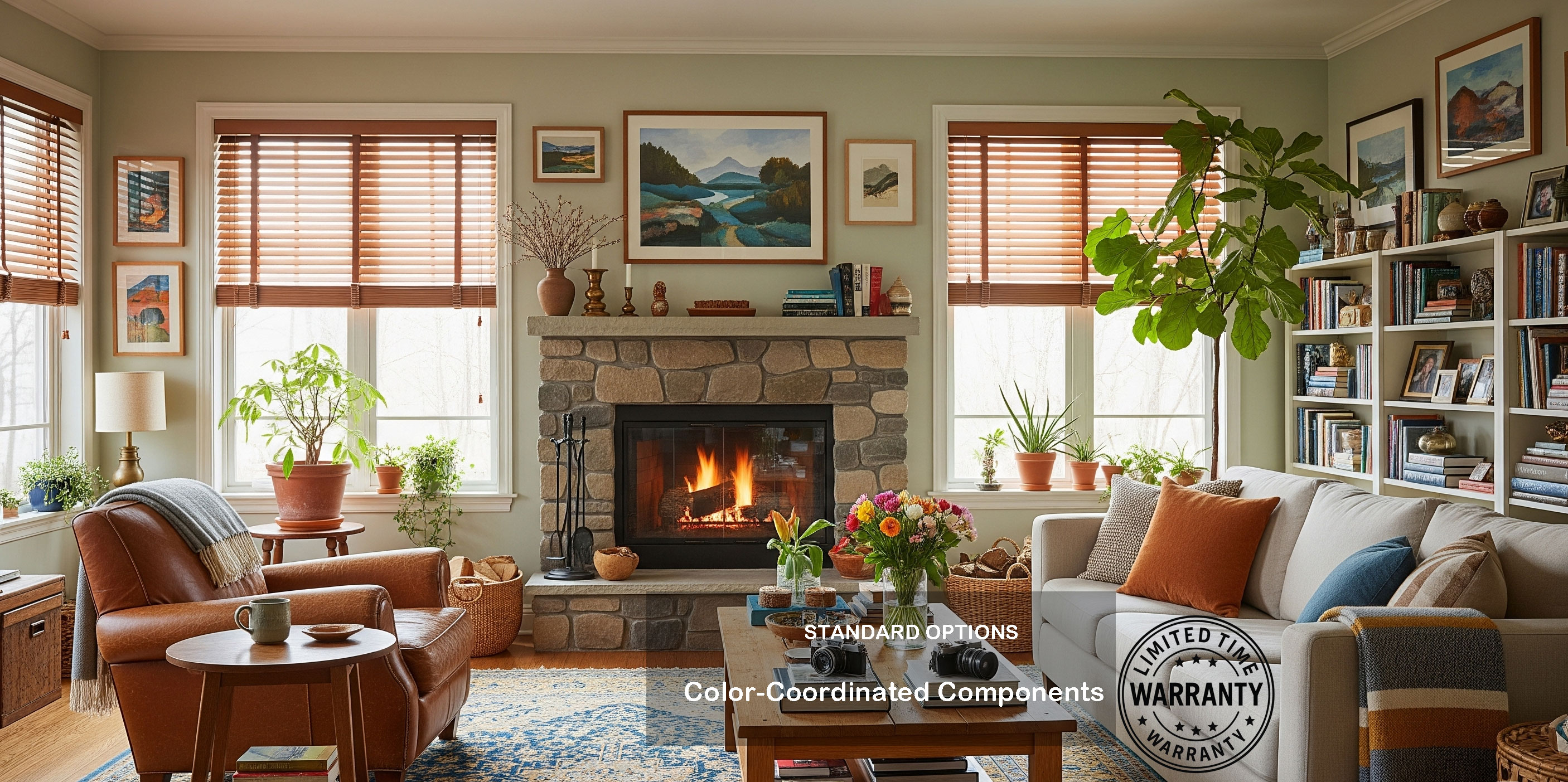 Designed with durability and style in mind, wood blinds come standard with a Colonial valance, sturdy bottom rail, and color-coordinated components, ensuring a seamless, finished appearance.