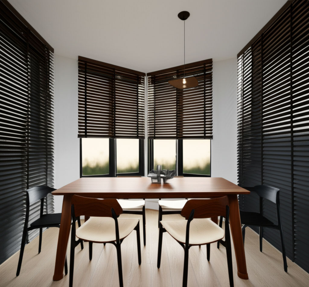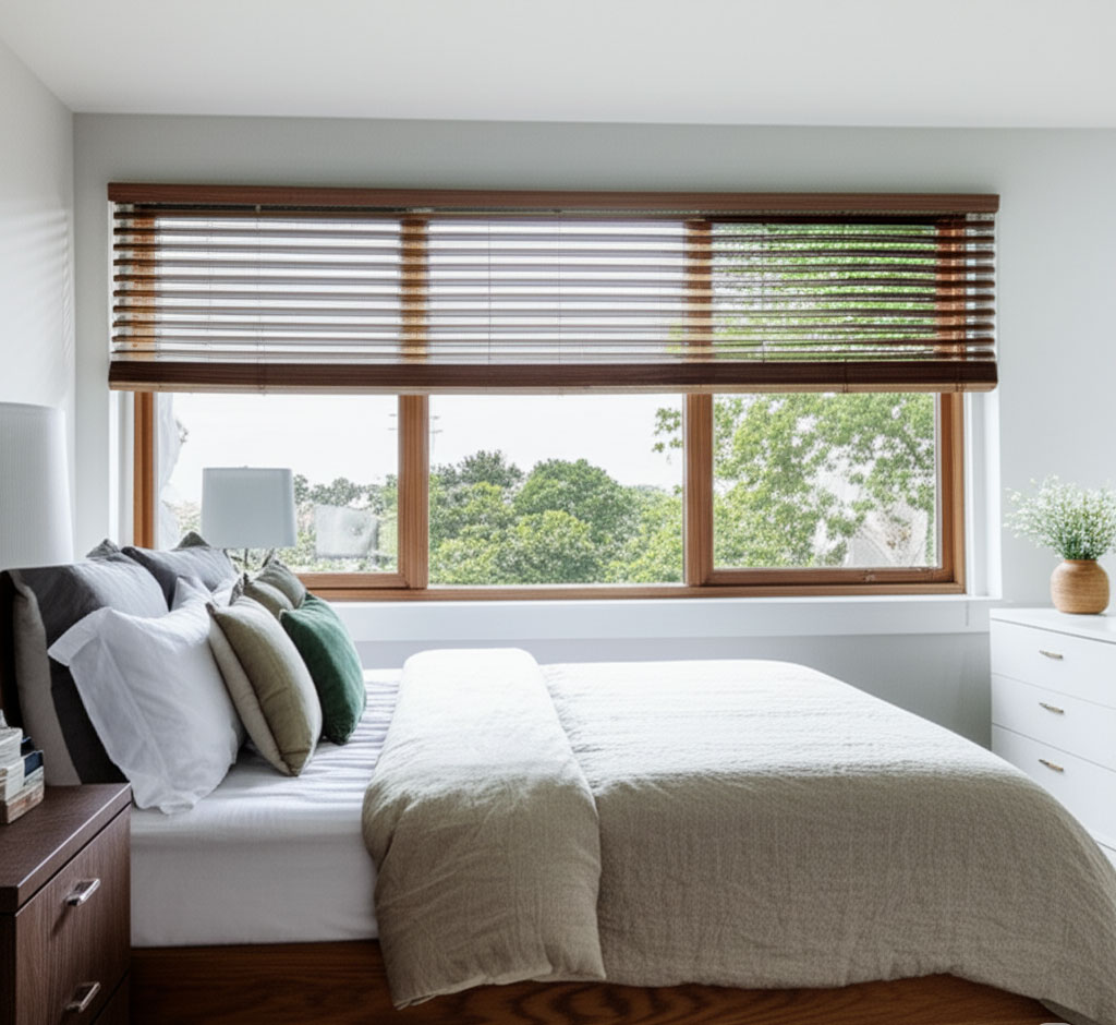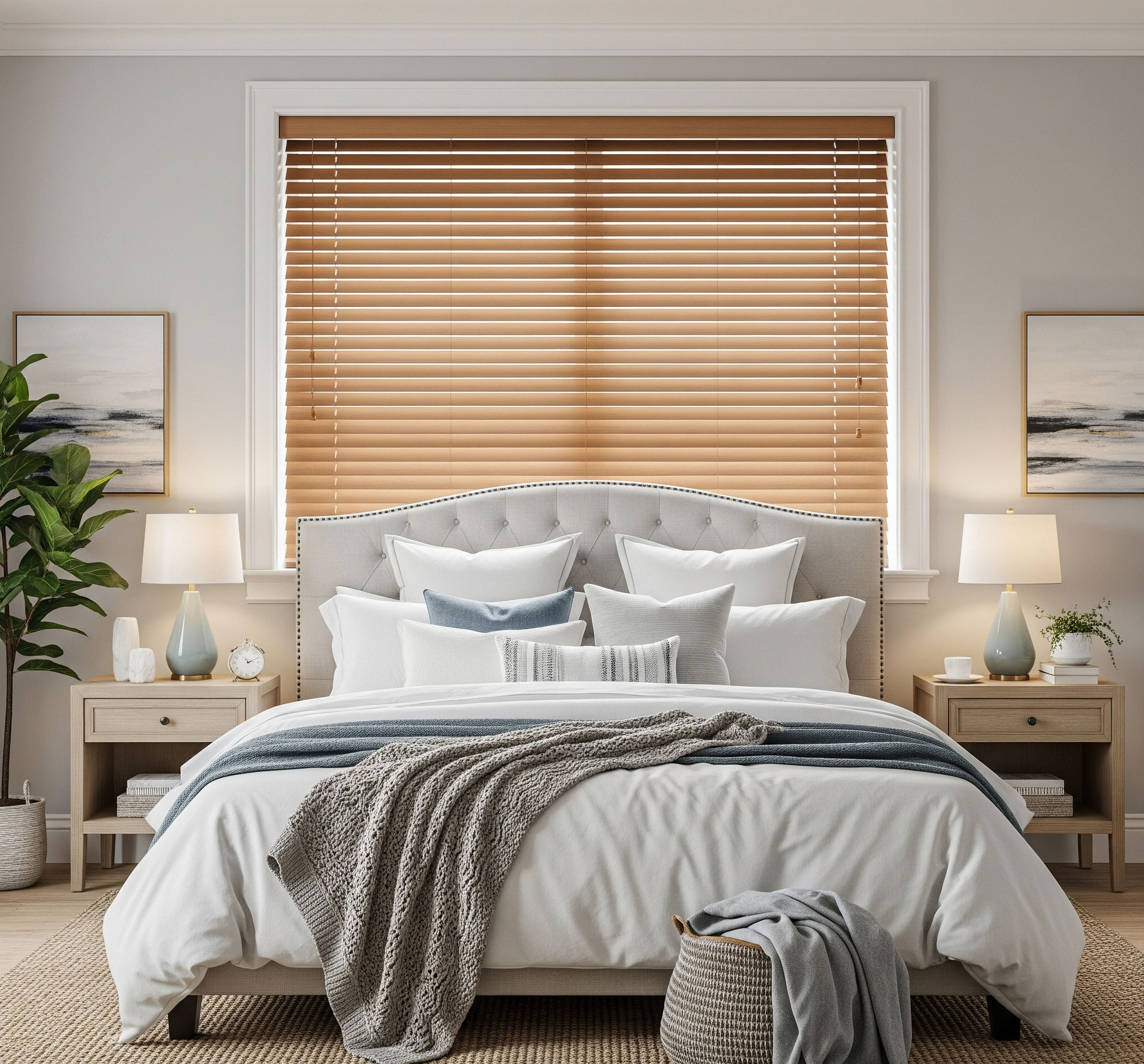 Wood blinds bring the warmth and beauty of real wood into your home, creating a timeless look that complements both traditional and modern interiors. Available in painted and stained finishes, they allow you to match your window coverings perfectly to your décor.